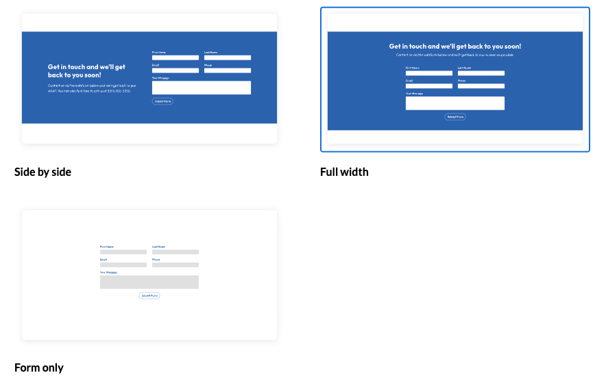 When you add a Form section, you must choose a layout for how the form appears on the page.